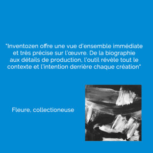 InventoZen est la solution de référence pour créer, archiver et diffuser en ligne votre Catalogue raisonné, afin d’inscrire durablement l’artiste et son œuvre dans l’histoire de l’art. Leader du marché, Inventozen accompagne la construction de plus de 120 Catalogues raisonnés.